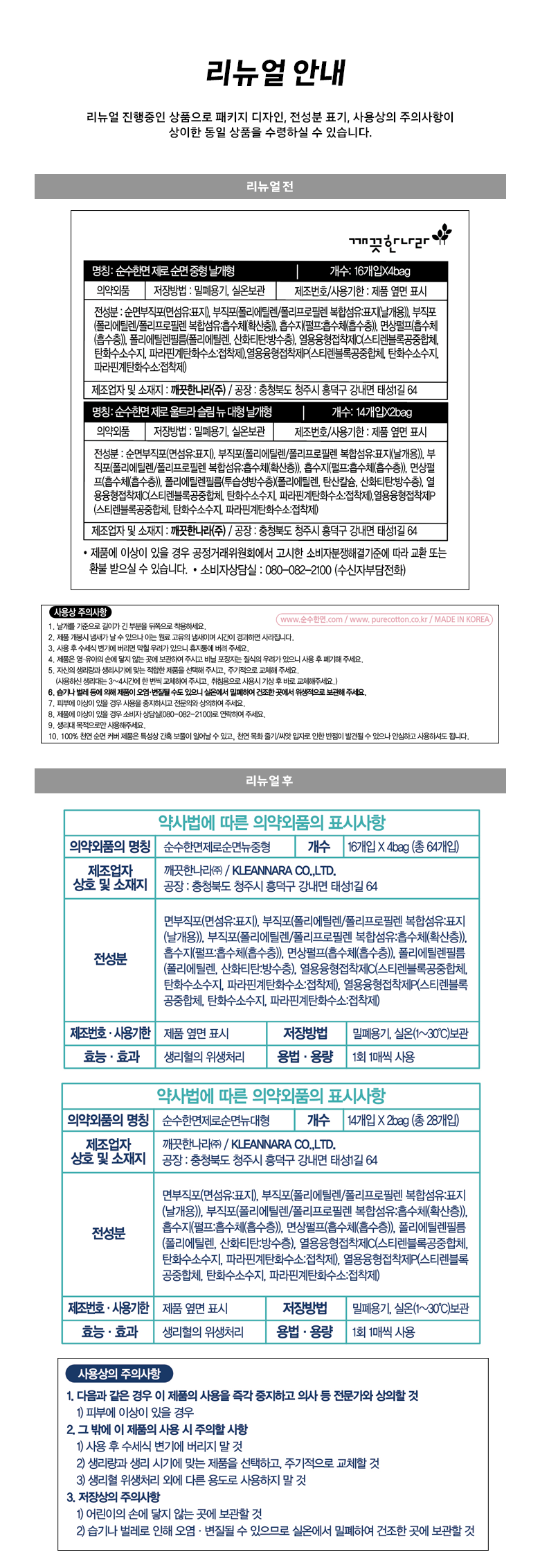 | 제조국(원산지) | 대한민국 | 제조자(수입자) | 깨끗한나라(주) |