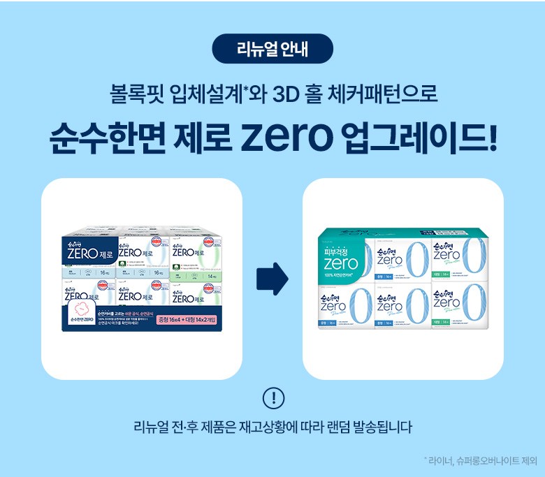| 품명 및 모델명 | 순수한면제로순면뉴중형+순수한면제로순면뉴대형 | 인증/허가 사항 | 의약외품 |