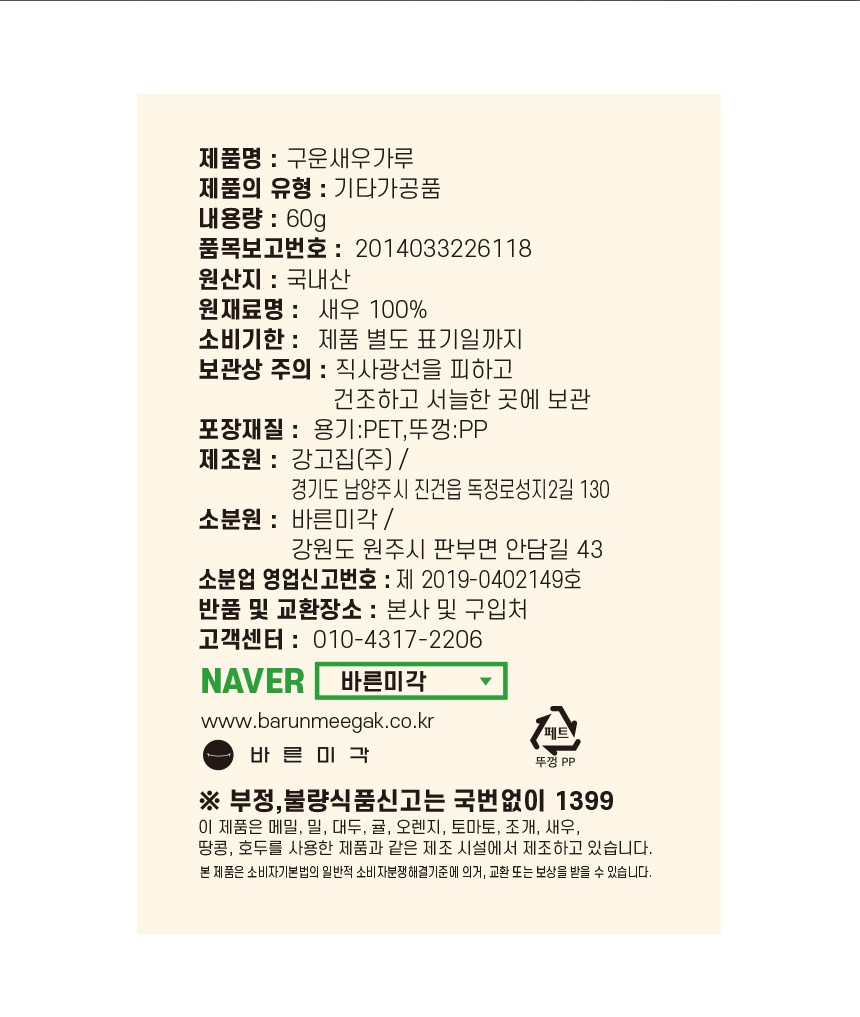| 포장단위별 내용물의 용량(중량), 수량 | 60g x 2개 | 원재료명 및 함량 | 컨텐츠 참조 |