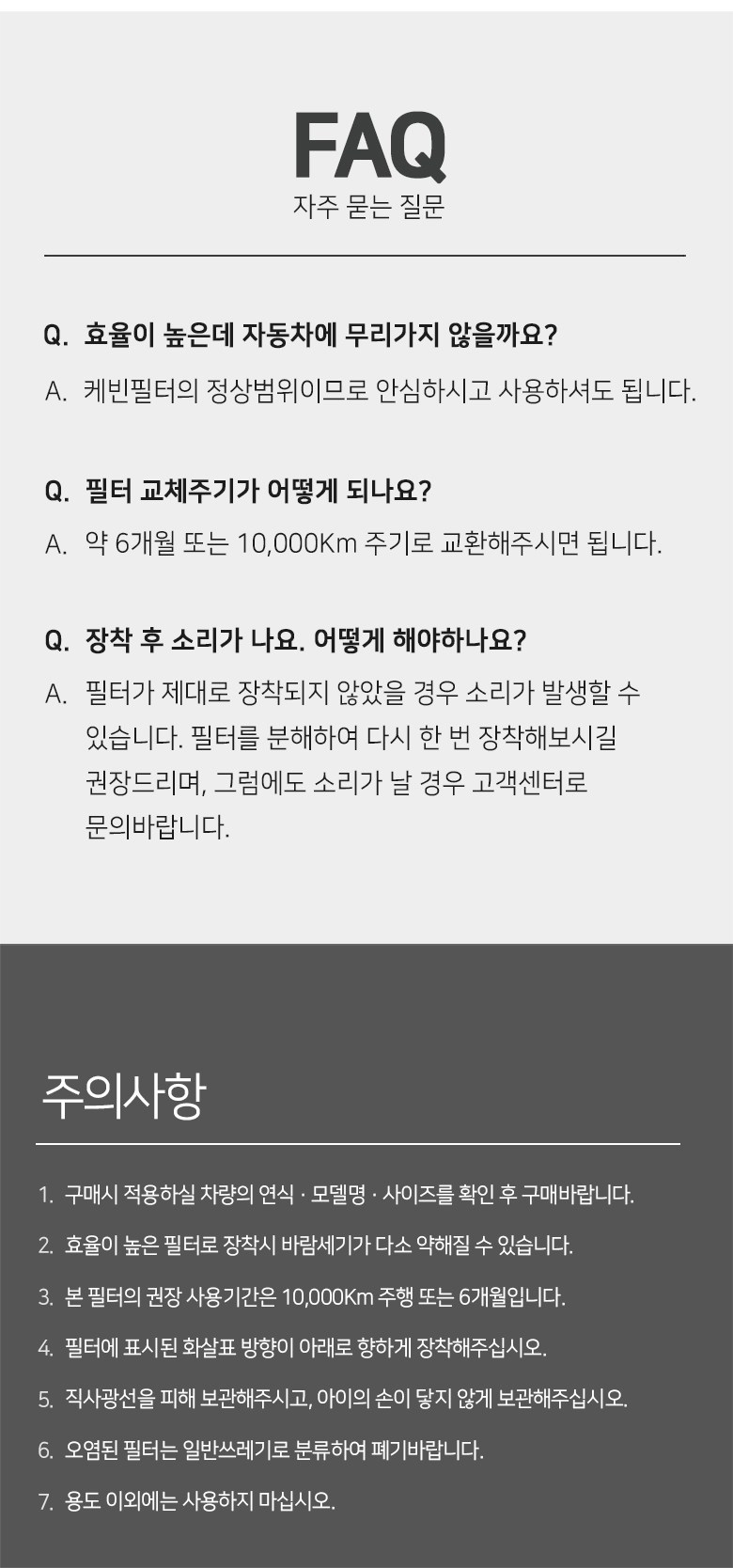 | KC 인증정보(자동차관리법에 따른 자기인증 대상 자동차부품에 한함) | 해당없음 | 제조자(수입자) | 하나필터 주식회사 |