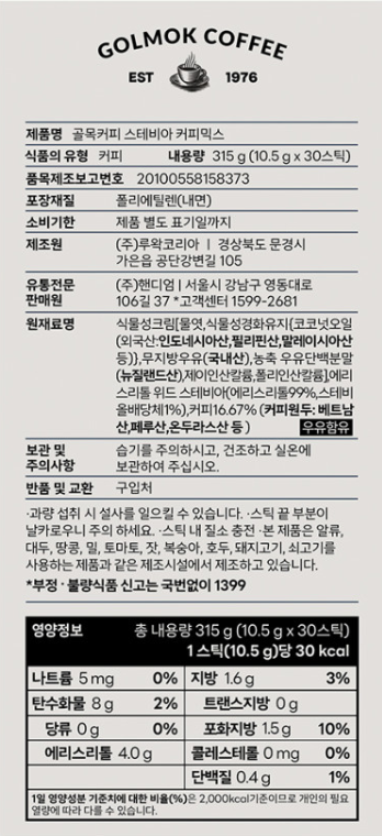 | 포장단위별 내용물의 용량(중량), 수량 | 10.5g x 30개입 x 3개 | 원재료명 및 함량 | 컨텐츠 참조 |