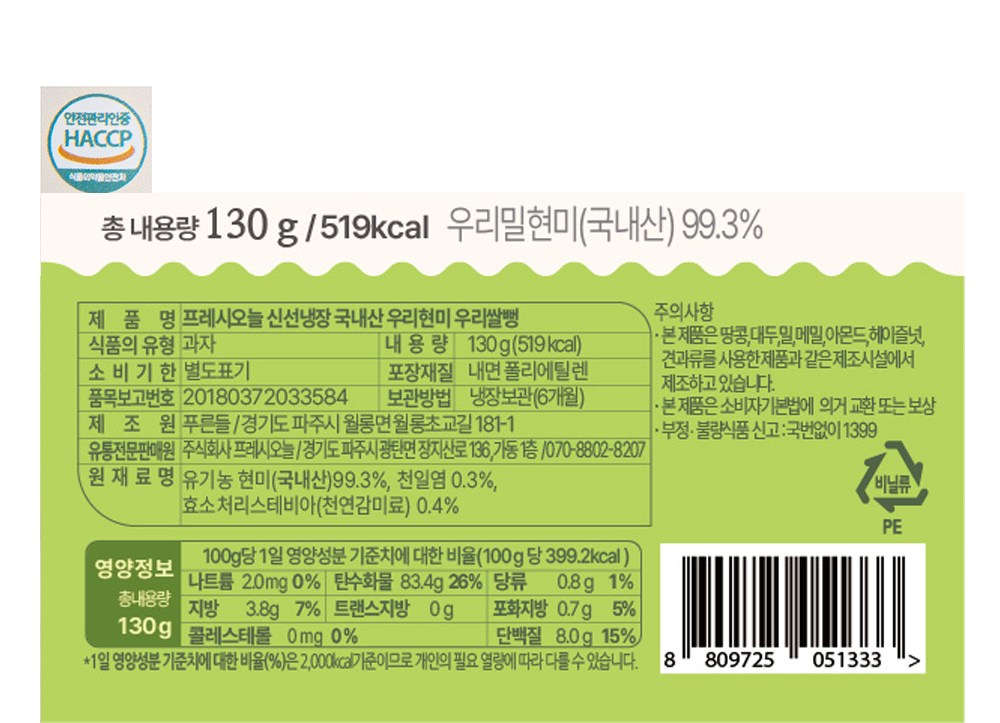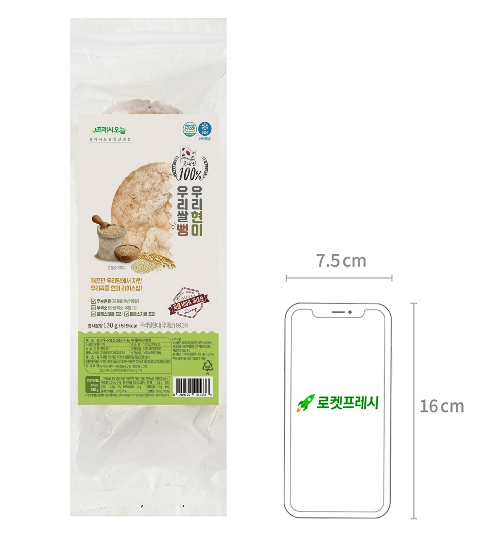 한 번 먹기 시작하면 끊임없이 먹게 되는 쌀뻥. 현미를 사용해 더욱 구수한 맛이 살아있는 프레시오늘 현미 쌀뻥을 만나보세요. 특유의 바삭바삭한 식감이 일품이랍니다. 은은한 단맛을 품고 있어 아이들 간식으로, 야외활동에 챙길 간식으로 제격이에요.