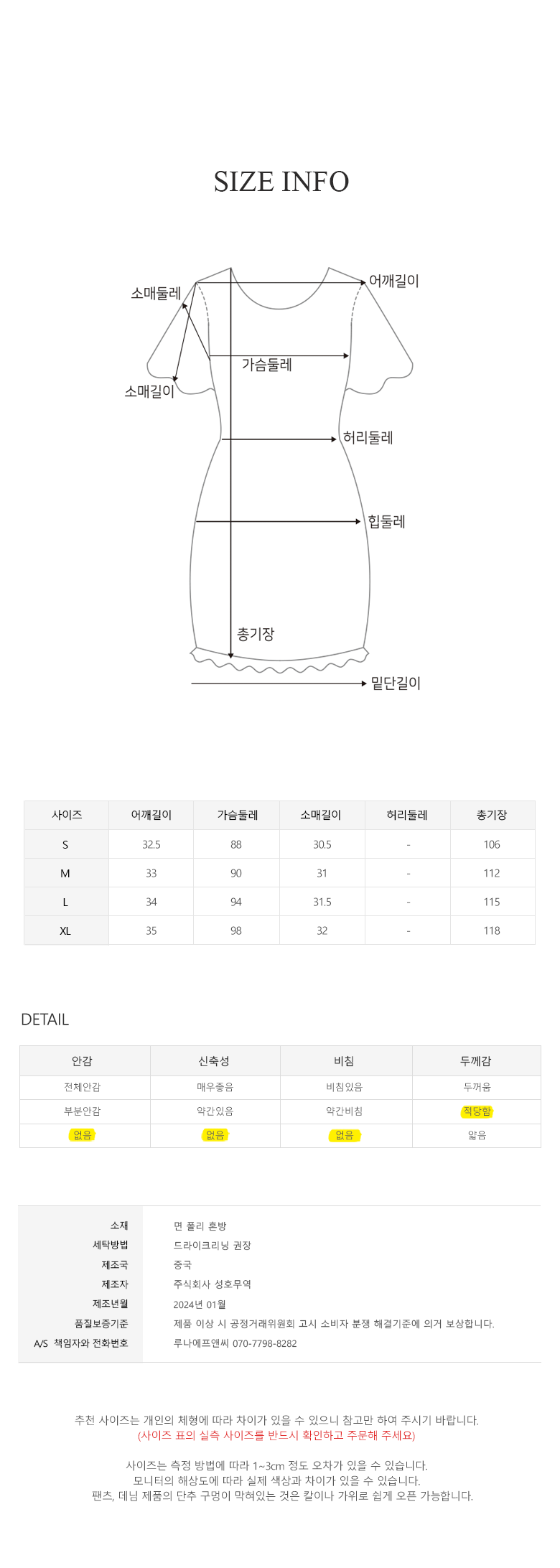 - 사용계절: 봄/가을용