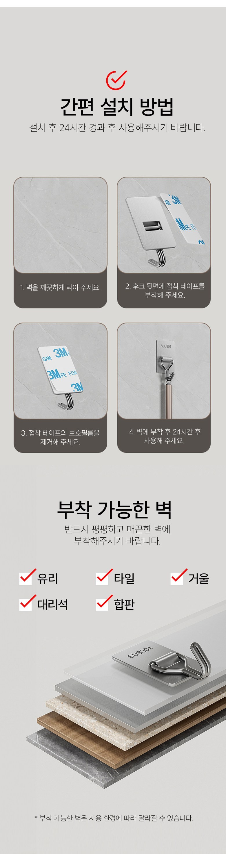 - 벽걸이/고리 고정방식: 접착형
