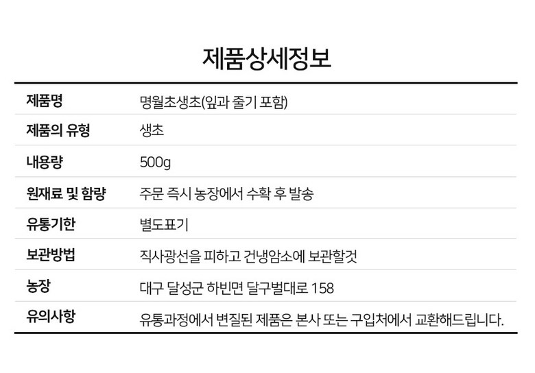 | 제조연월일, 소비기한 또는 품질유지기한 | 상품 상세페이지 참조 | 세부 품목군별 표시사항 | 상품 상세페이지 참조 |