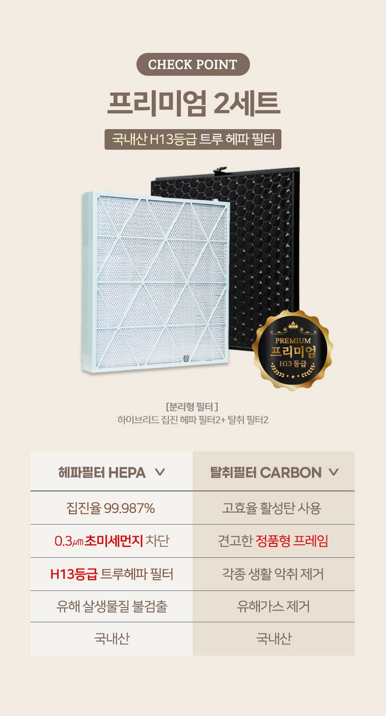 - 공기청정기 필터 종류: 집진+탈취필터