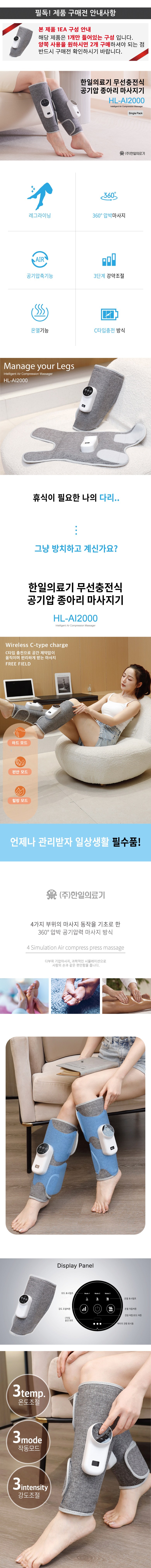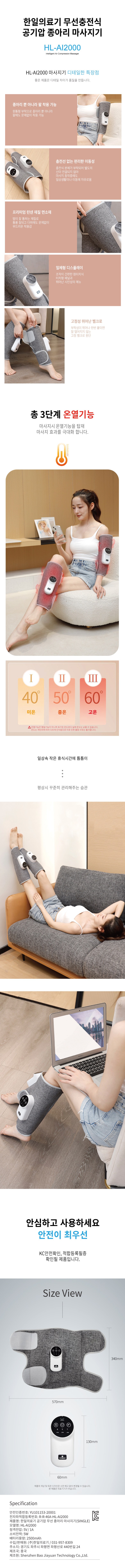 | 품명 및 모델명 | HanilMedical 무선 충전식 공기압 종아리 마사지기 / HL-AI2000 | KC 인증정보 | 본품: R-R-46A-HL-AI2000 / 전지: YU101153-20001 |