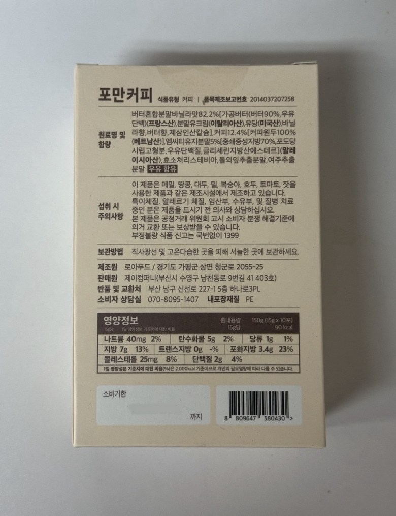 | 생산자 및 소재지 | 상품 상세페이지 참조 | 제조연월일, 소비기한 또는 품질유지기한 | 상품 상세페이지 참조 |