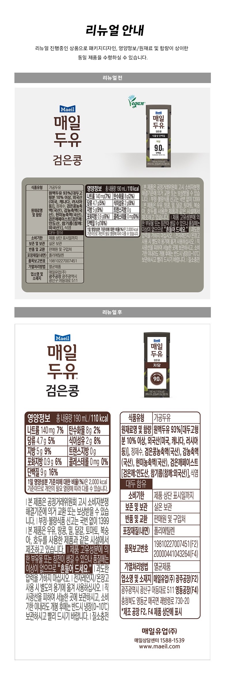 | 제품명 | 매일두유 검은콩 | 식품의 유형 | 컨텐츠 참조 |