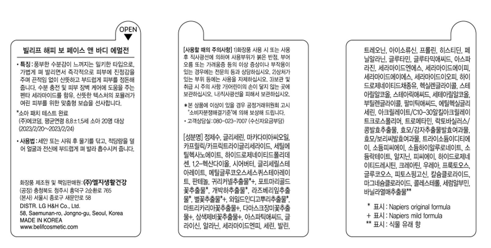 | 화장품제조업자, 화장품책임판매업자 및 맞춤형화장품판매업자 | (주)엘지생활건강/(주)엘지생활건강 | 제조국 | 대한민국 |