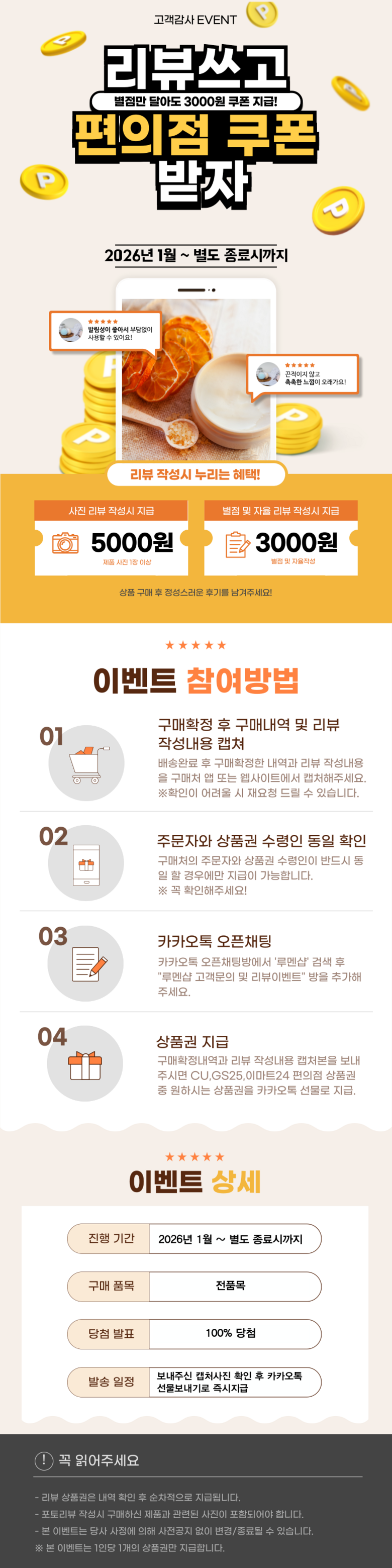 - ㆍ모니터 해상도의 차이로 인해 색상이나 이미지가 실제와 달라, 고객이 단순 변심으로 교환/반품을 무료로 요청하는 경우