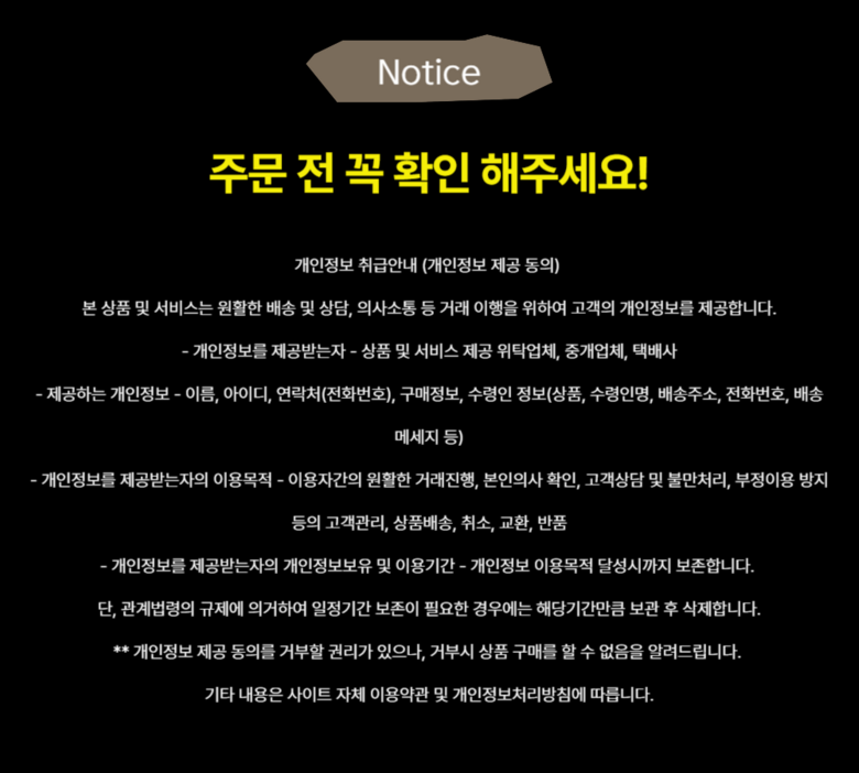 - 상품문의 및 후기게시판을 통해 취소나 환불, 반품 등은 처리되지 않습니다.