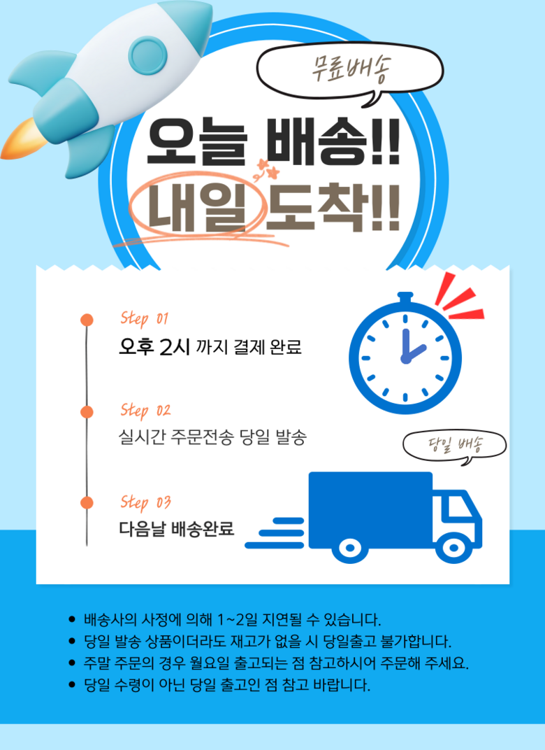 | 배송기간 | ㆍ도서산간 지역 등은 배송에 3-5일이 더 소요될 수 있습니다. - 천재지변, 물량 수급 변동 등 예외적인 사유 발생 시, 다소 지연될 수 있는 점 양해 부탁드립니다. | ||
