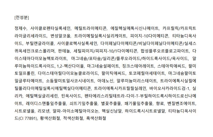 | 화장품제조업자, 화장품책임판매업자 및 맞춤형화장품판매업자 | (주)엘지생활건강/(주)엘지생활건강 | 제조국 | 대한민국 |