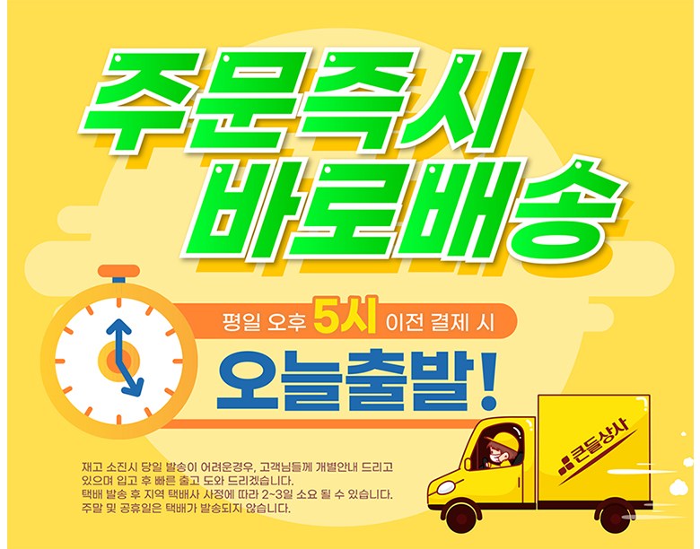 | 배송기간 | ㆍ도서산간 지역 등은 배송에 3-5일이 더 소요될 수 있습니다. - 천재지변, 물량 수급 변동 등 예외적인 사유 발생 시, 다소 지연될 수 있는 점 양해 부탁드립니다. | ||