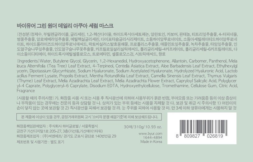 바이유어 그린원더 데일리 아쿠아 세럼 마스크 310g