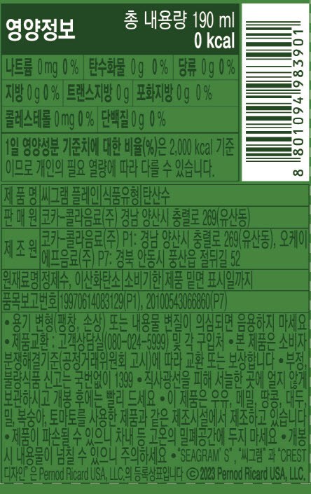 | 포장단위별 내용물의 용량(중량), 수량 | 190ml, 60개 | 원재료명 및 함량 | 컨텐츠 참조 |