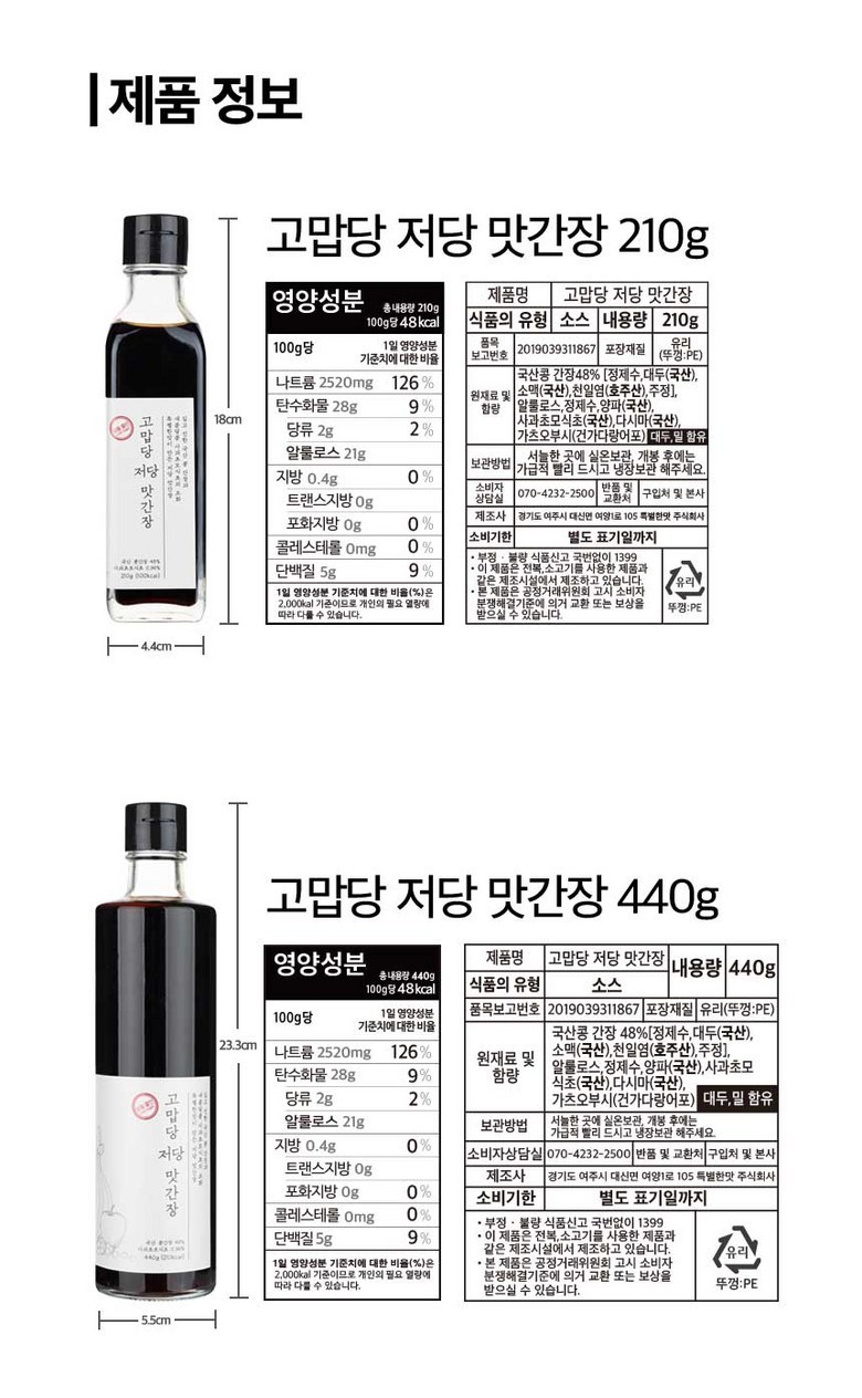 | 생산자 및 소재지 | 상품 상세페이지 참조 | 제조연월일, 소비기한 또는 품질유지기한 | 상품 상세페이지 참조 |