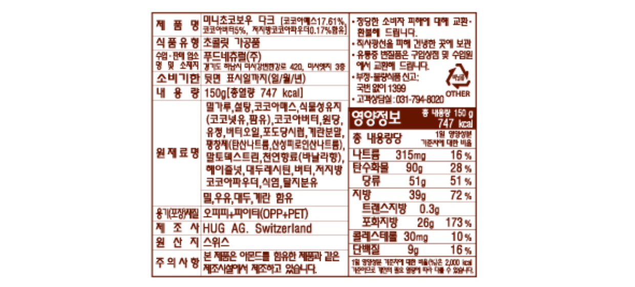 | 생산자 및 소재지 | 컨텐츠 참조 | 제조연월일, 소비기한 또는 품질유지기한 | 업데이트 예정 |
