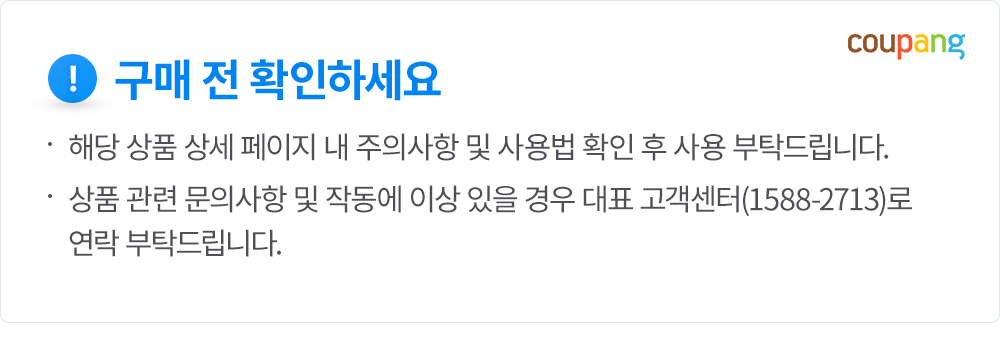 - 가격, 판매자, 교환/환불 및 배송 등 해당 상품 자체와 관련 없는 문의는 고객센터 내 1:1 문의하기를 이용해주세요.