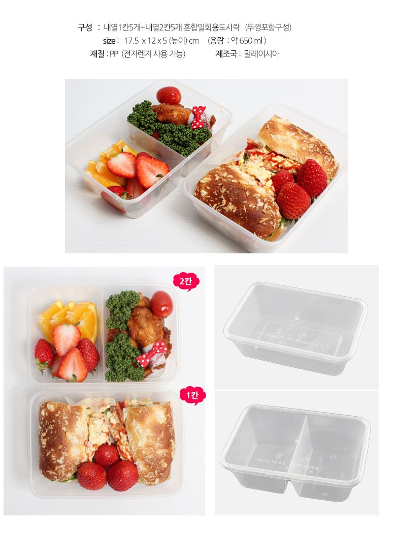 일회용도시락 내열 1칸 5p + 내열 2칸 5p + 뚜껑 10p