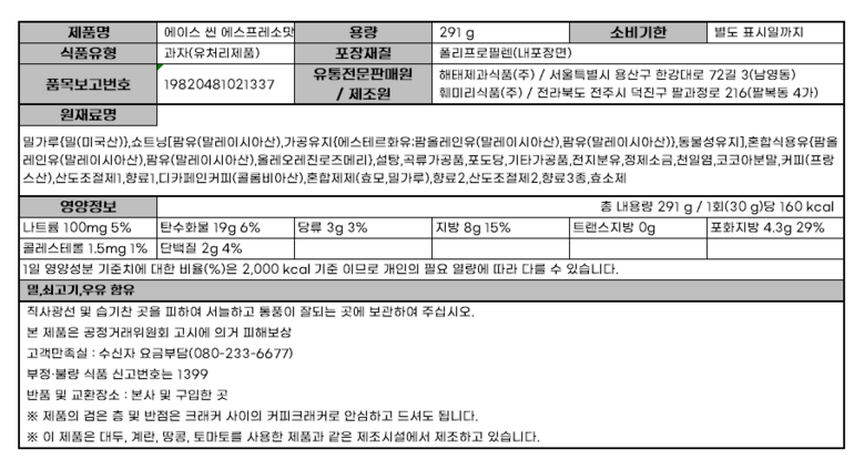 - 과자 종류: 과자/쿠키/비스킷