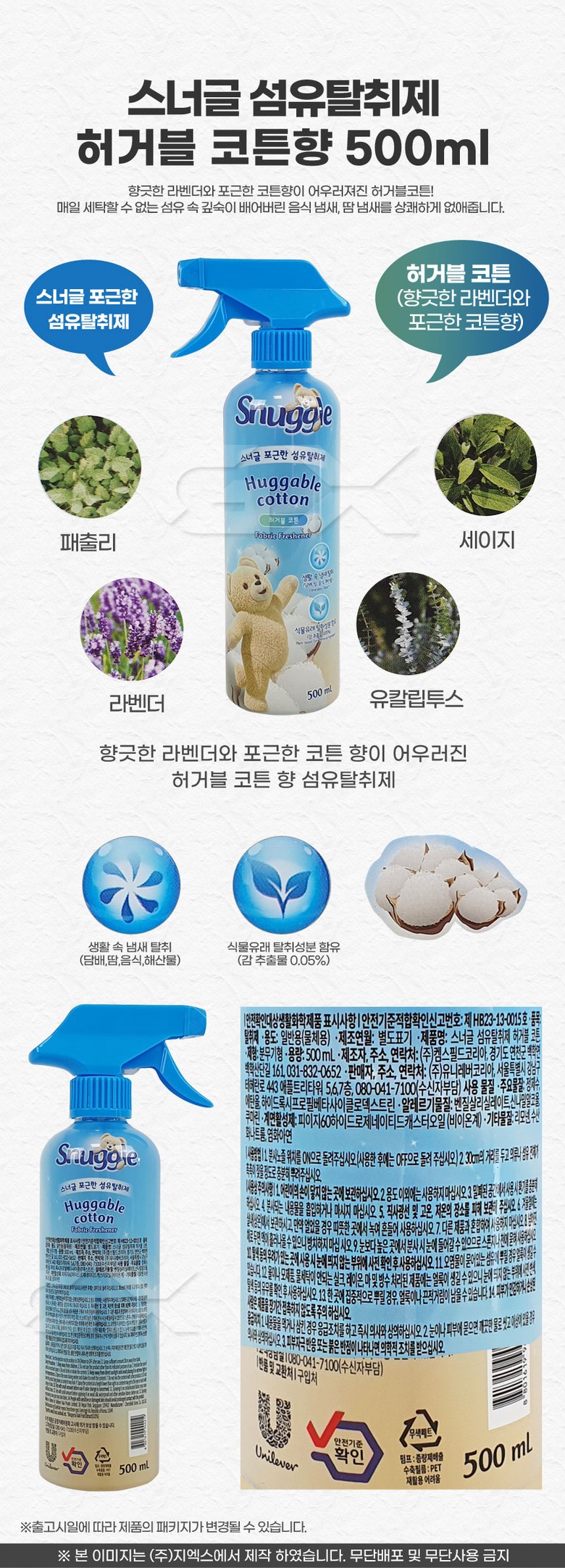 | 품목 및 제품명 | 상품 상세페이지 참조 | 용도(표백제의 경우 계열을 함께표시) 및 제형 | 상품 상세페이지 참조 |