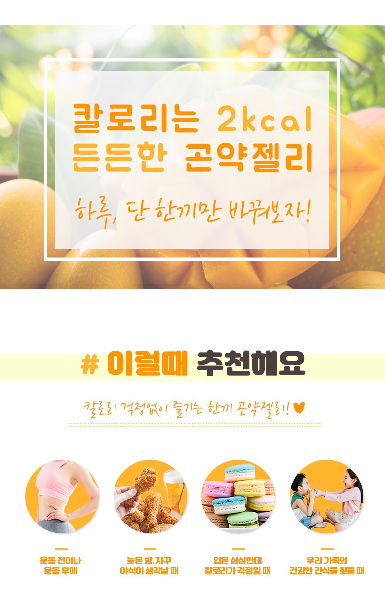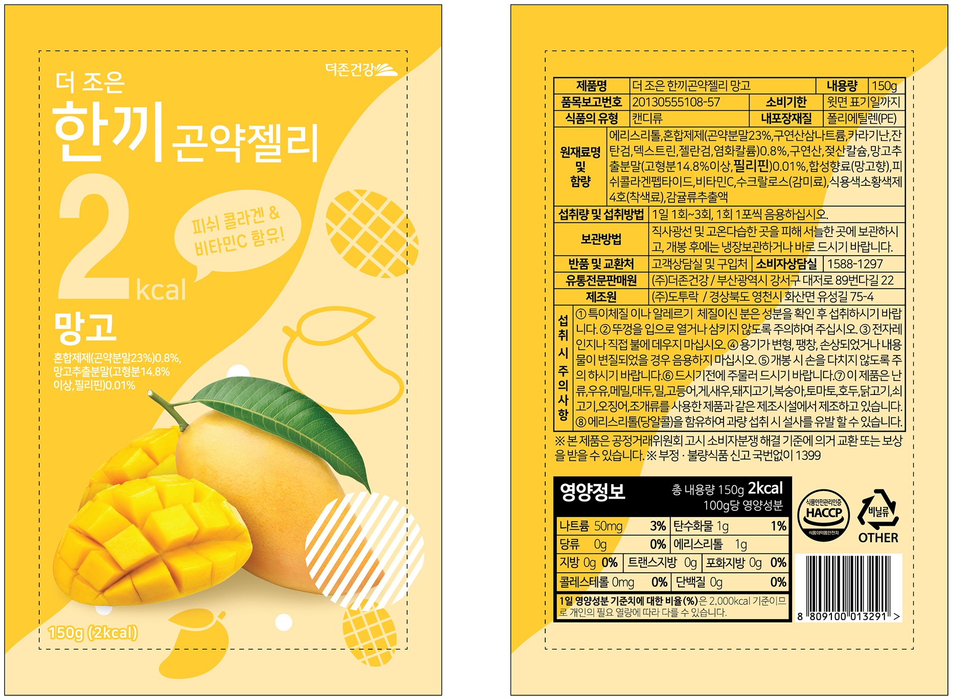 | 제품명 | 더조은 한끼곤약젤리 망고 | 식품의 유형 | 컨텐츠 참조 |