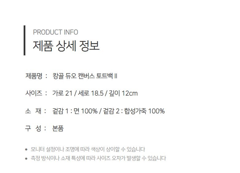 | 제조국 | 상품 상세페이지 참조 | 취급시 주의사항 | 상품 상세페이지 참조 |
