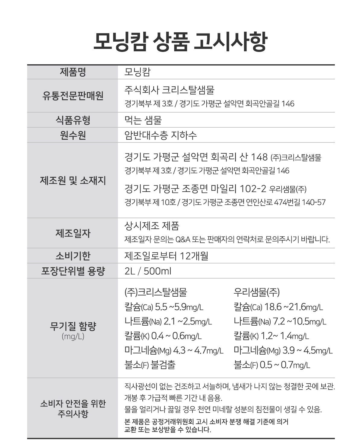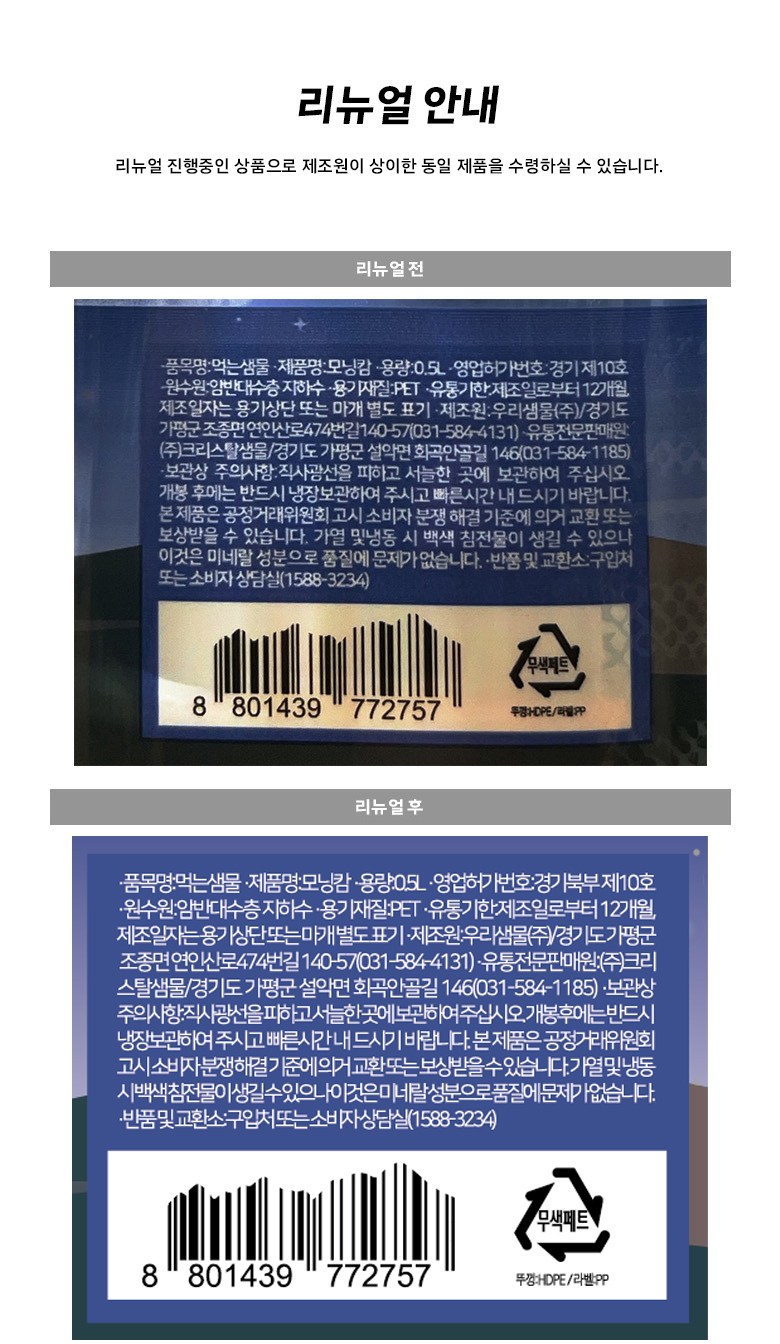 | 생산자 및 소재지 | 컨텐츠 참조 | 제조연월일, 소비기한 또는 품질유지기한 | 업데이트 예정 |