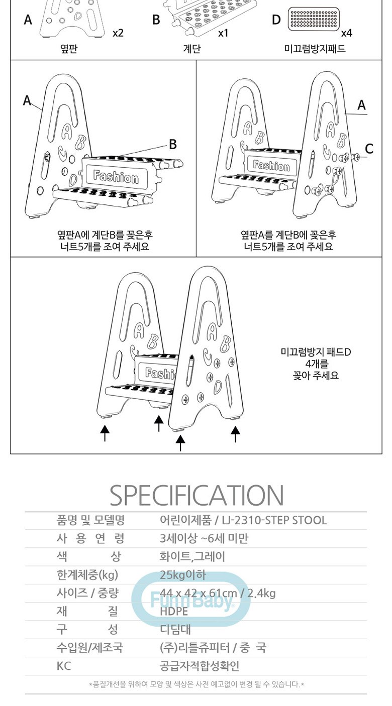 | 품명 및 모델명 | LJ-2310-STEP STOOL | KC 인증정보 | 유/KC마크 |