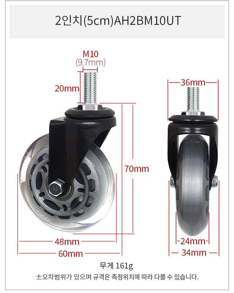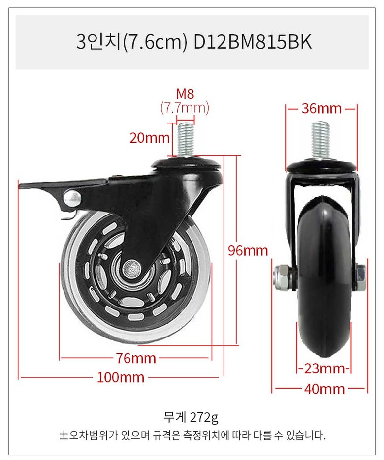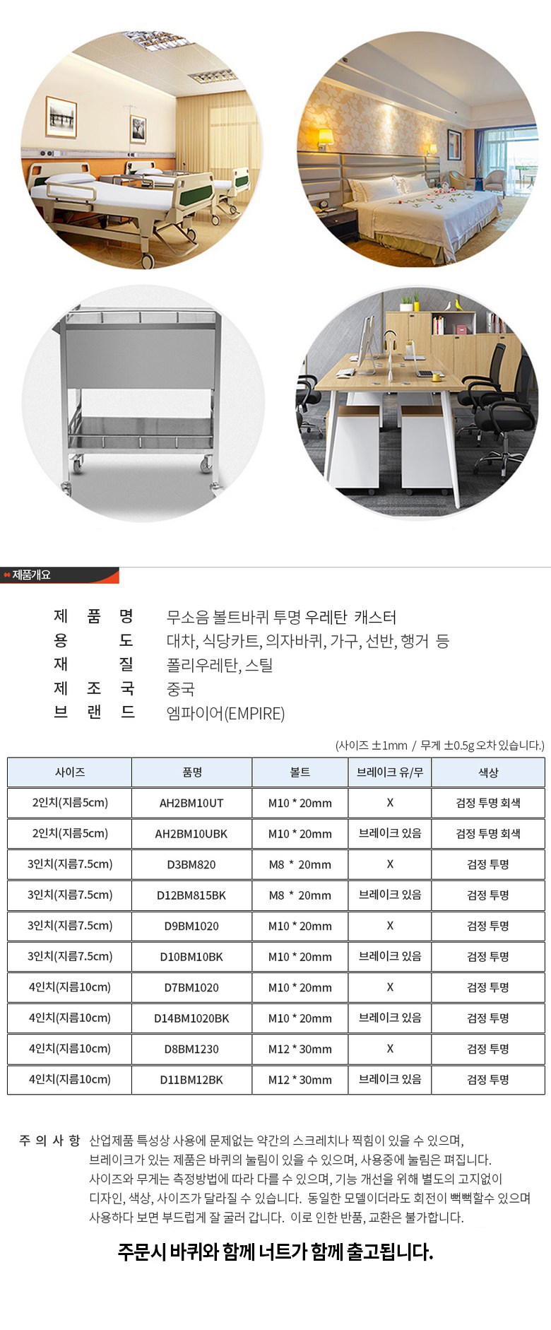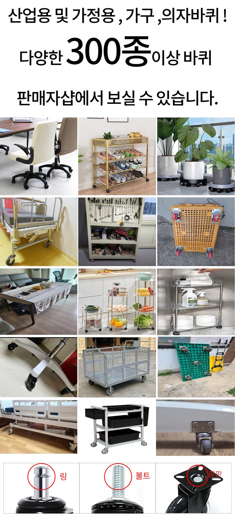 | 품명 및 모델명 | 볼트 무소음 우레탄 의자 대차 카트 바퀴 2인치 3인치 4인치 캐스터 | 인증/허가 사항 | 해당없음 |