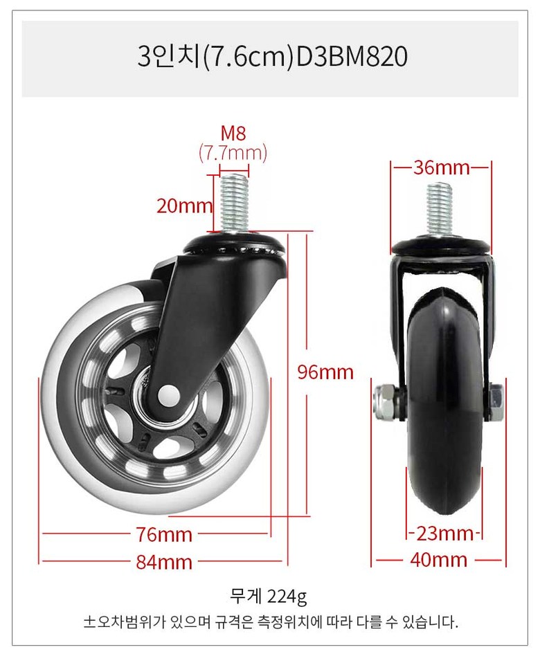 - 360도 회전바퀴 여부: 360도 회전바퀴