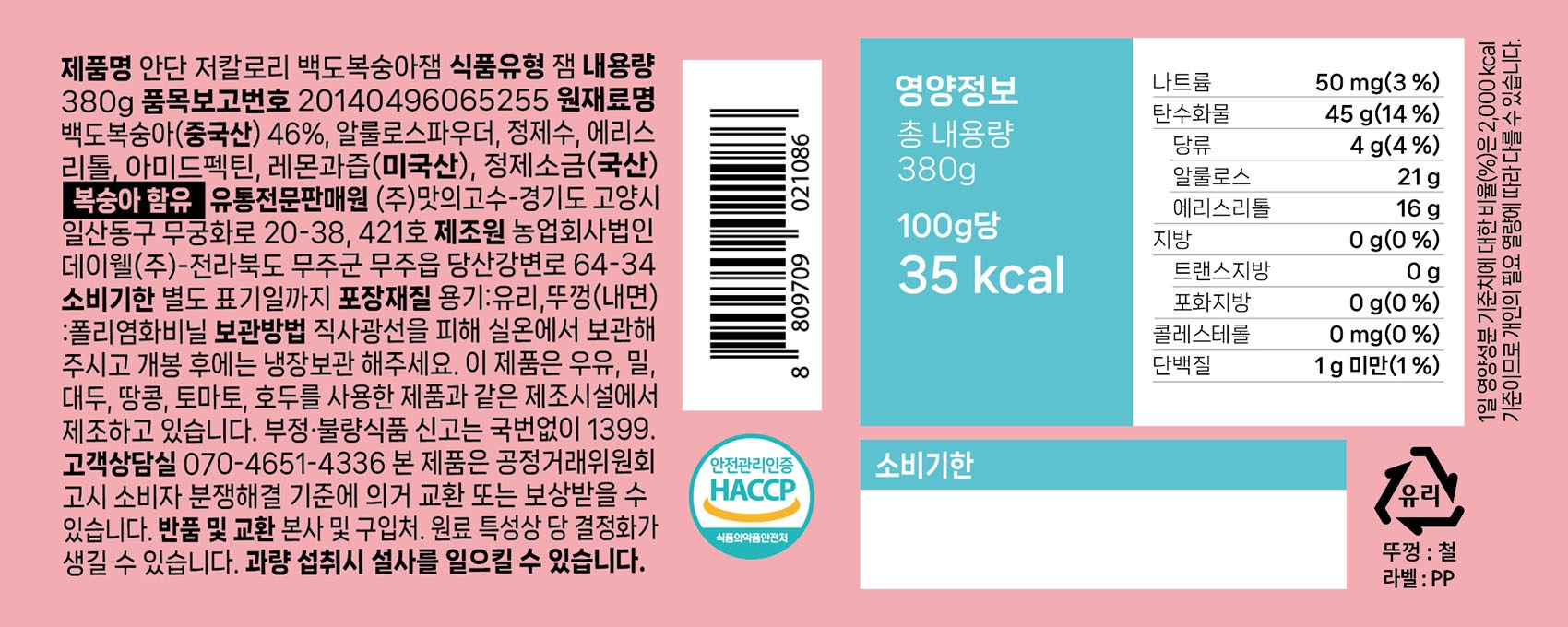 - 잼 종류: 복숭아