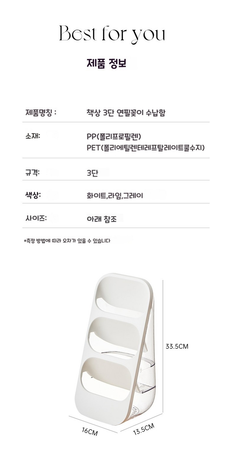 | 품명 및 모델명 | 심플리미 대용량 다용도 수납 3단 연필꽂이 | 인증/허가 사항 | 해당없음 |