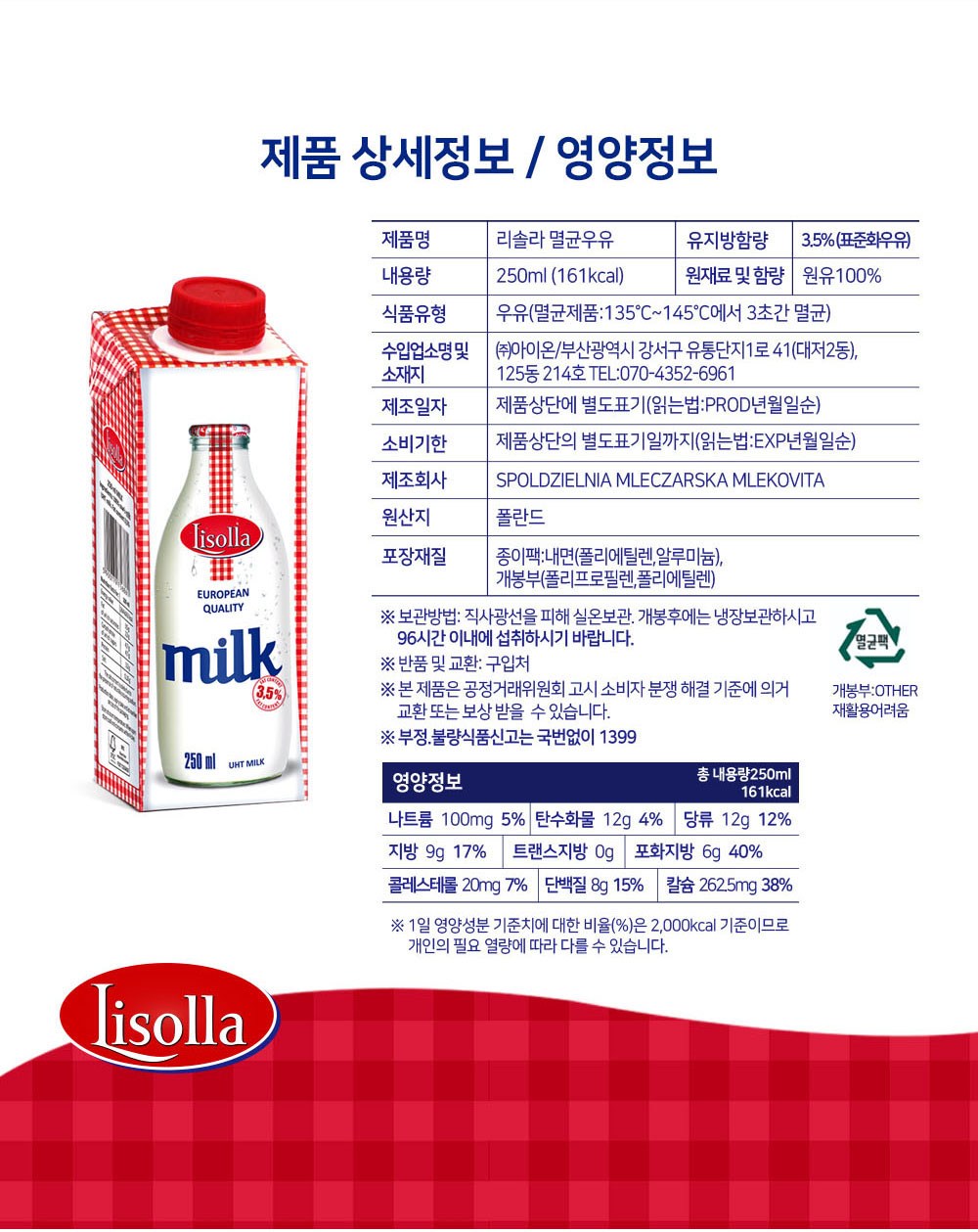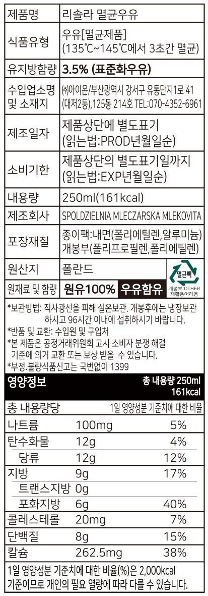 - 멸균/냉장: 멸균우유