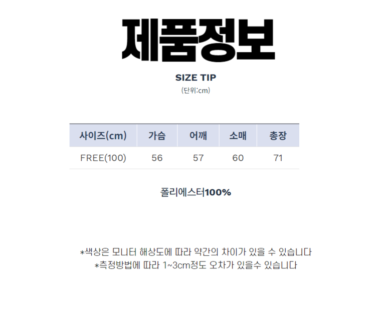 | 제품 소재 | 폴리에스터 | 색상 | 상품 상세페이지 참조 |