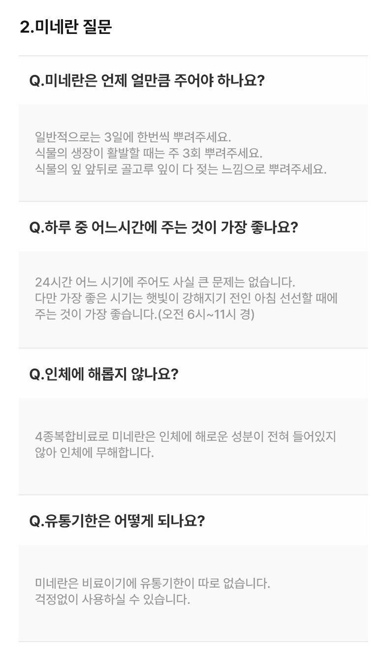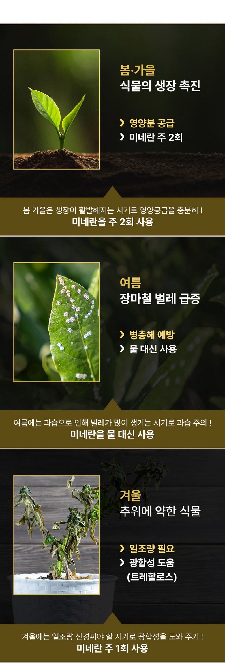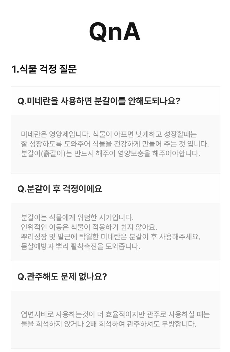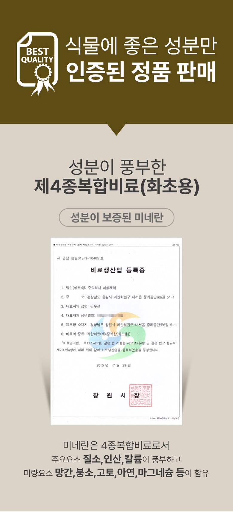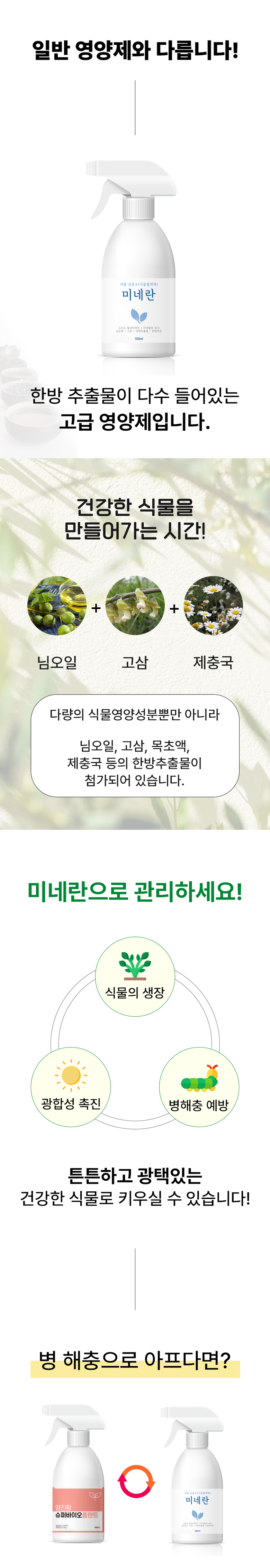 | 품명 및 모델명 | 미네란 500ml, 1L | 인증/허가 사항 | 복합비료/제4종복합(화초용) |
