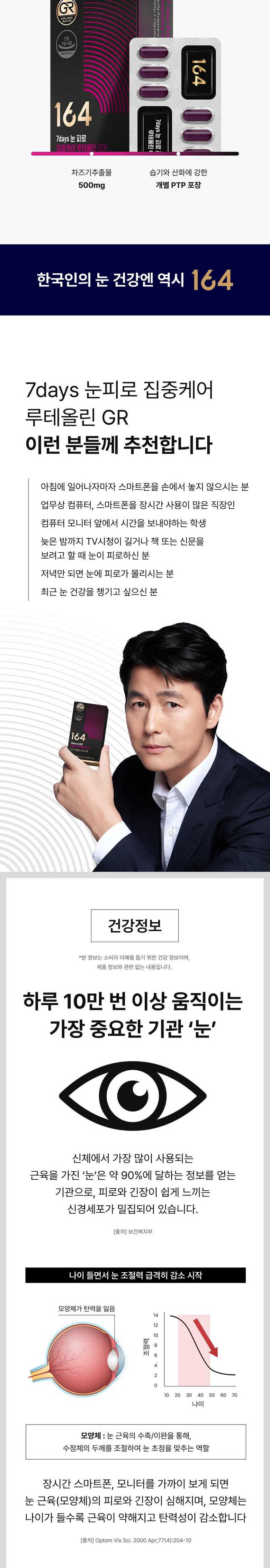| 제품명 | 164 7days 눈 피로 집중케어 루테올린 GR | 제조업소의 명칭과 소재지 | 코스맥스바이오㈜ / 충청북도 제천시 바이오밸리3로 30 |
