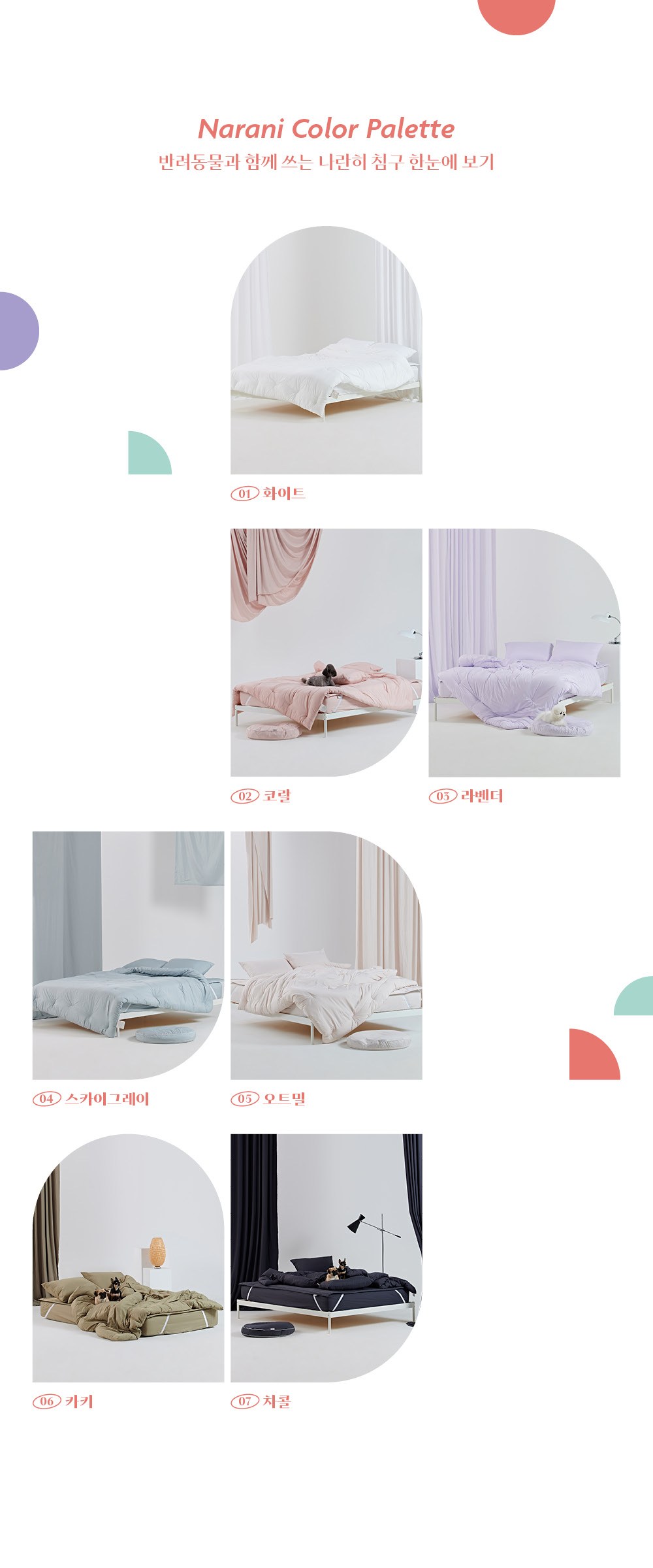 | 제품 소재 | [베개커버, 이불, 패드] 겉감, 충전재 : 폴리에스테르 100% | 색상 | 컨텐츠 참조 |