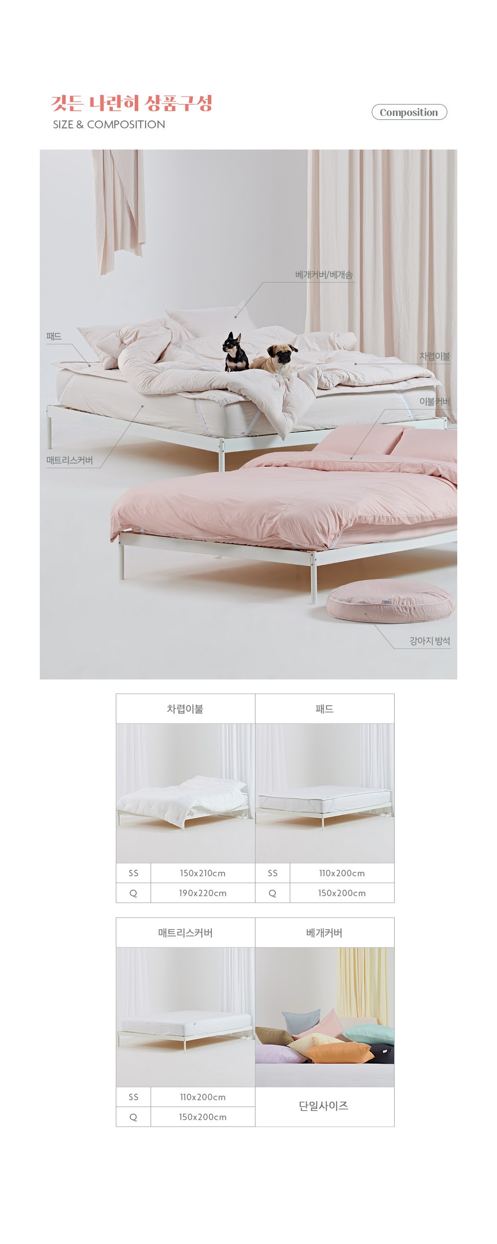 | 치수 | 컨텐츠 참조 | 제품구성 | 이불+패드+베개커버 세트 |