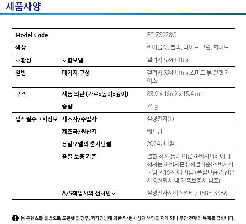 | 품명 및 모델명 | 삼성전자 스마트 뷰 월렛 커버 휴대폰 케이스 | 인증/허가 사항 | 해당없음 |