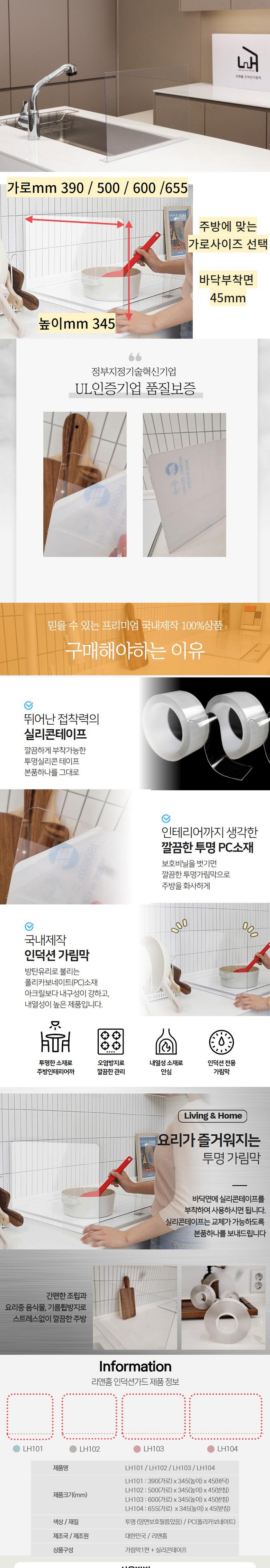 | 품명 및 모델명 | 리앤홈 투명인덕션 가림막 | 인증/허가 사항 | 상품 상세페이지 참조 |