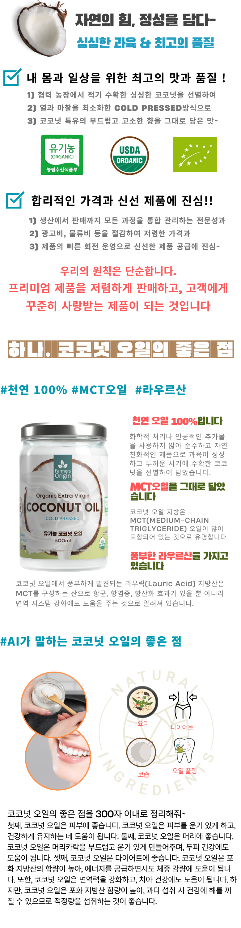 | 제품명 | 유기농 파머스오리진 엑스트라버진 코코넛오일 | 식품의 유형 | 야자유 |