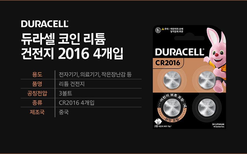 | 품명 및 모델명 | 듀라셀 리튬 코인 건전지 cr2016 | 인증/허가 사항 | 해당없음 |