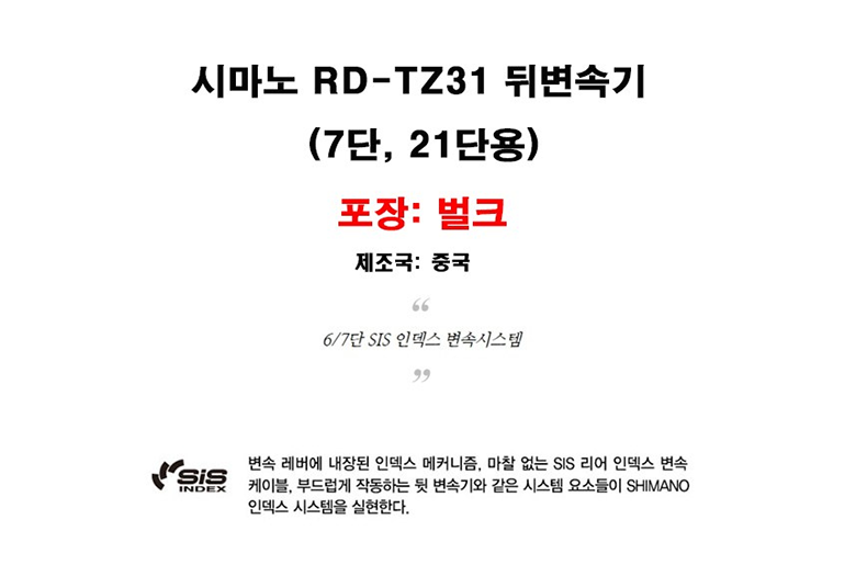 시마노 RD-TZ31 행어방식 7단 뒷변속기 / 21단 자전거