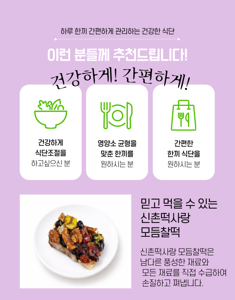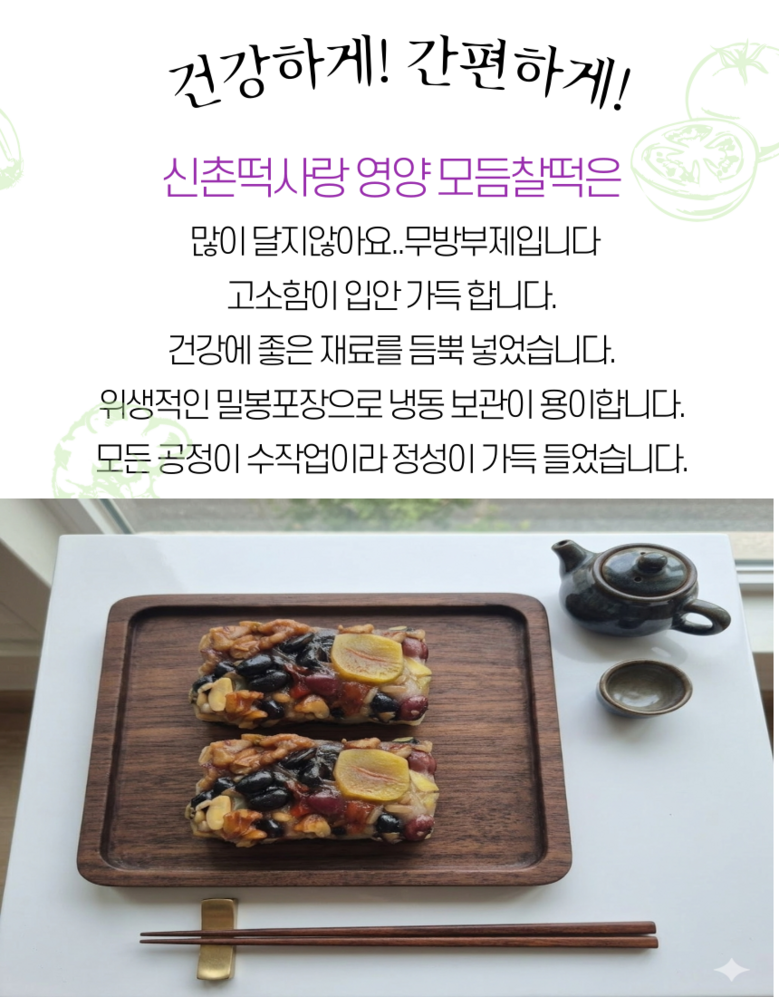 | 제품명 | 신촌떡사랑의 모듬 영양찰떡 | 식품의 유형 | 떡류 |