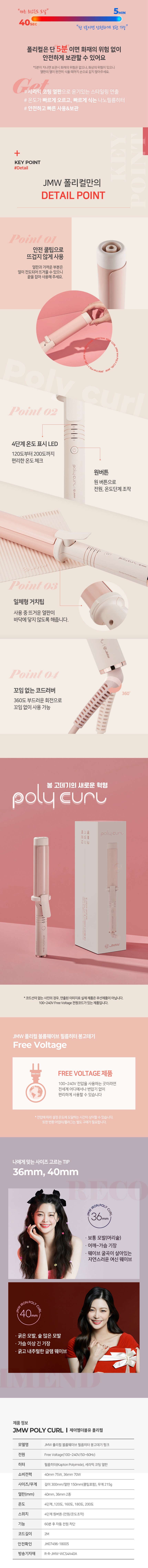 | 품명 및 모델명 | JMW 폴리컬 볼륨웨이브 필름히터 봉고데기 40mm / WCS4A40A | KC 인증정보 | JH07496-18005B, R-R-JMW-WCS4A40A |
