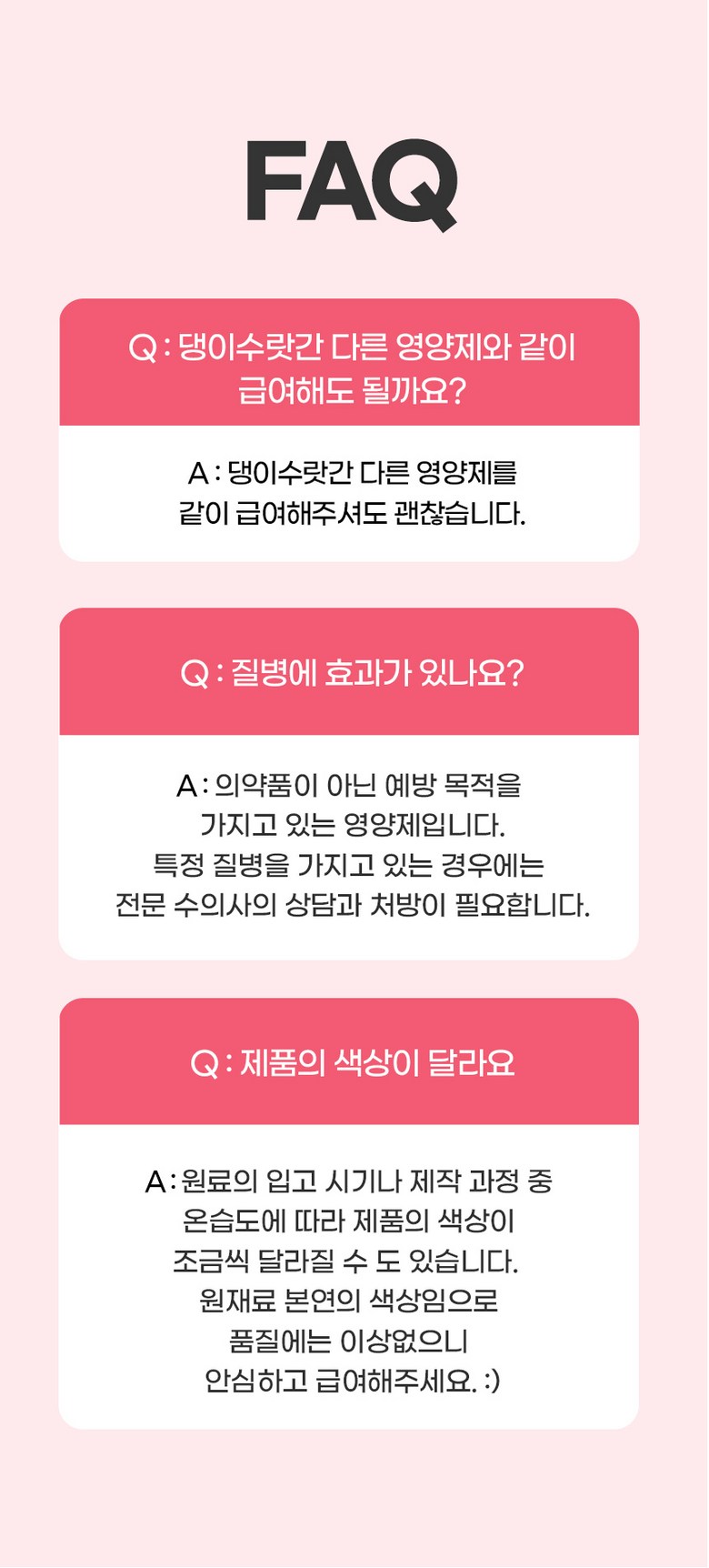 - 가격, 판매자, 교환/환불 및 배송 등 해당 상품 자체와 관련 없는 문의는 고객센터 내 1:1 문의하기를 이용해주세요.