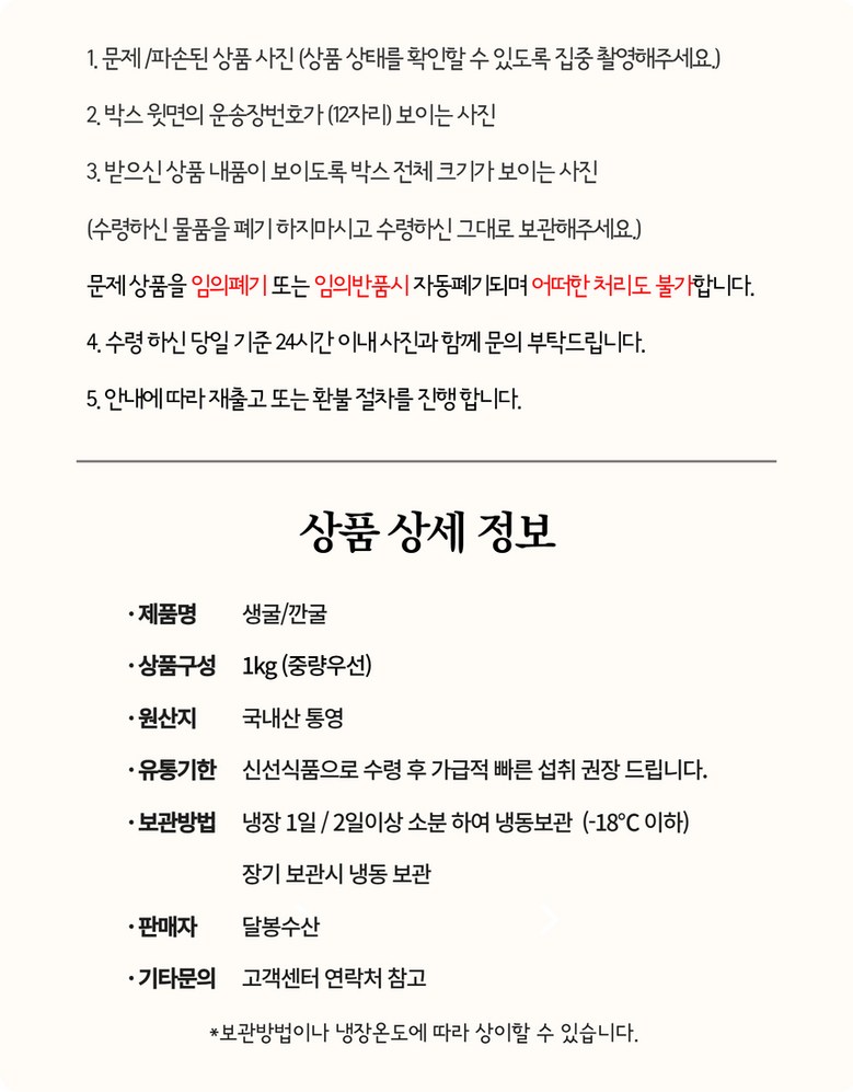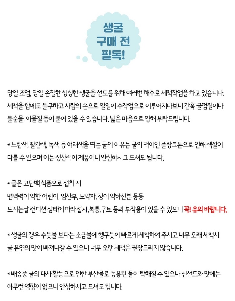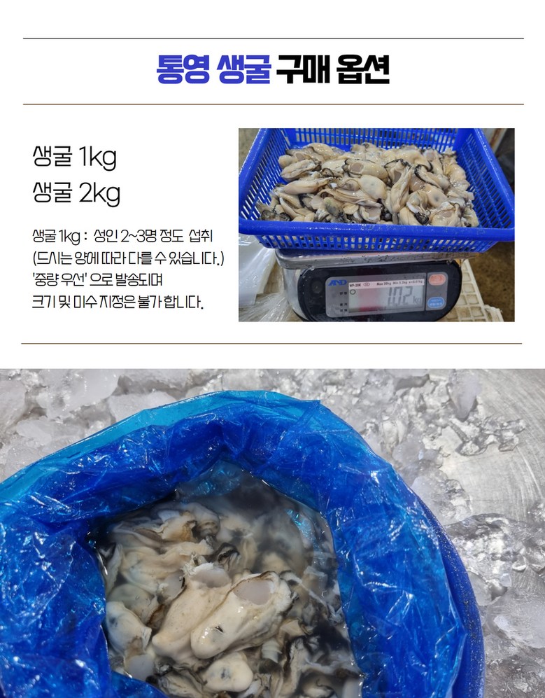 | 품목 또는 명칭 | 생굴 | 포장단위별 내용물의 용량(중량),수량,크기 | 1kg |